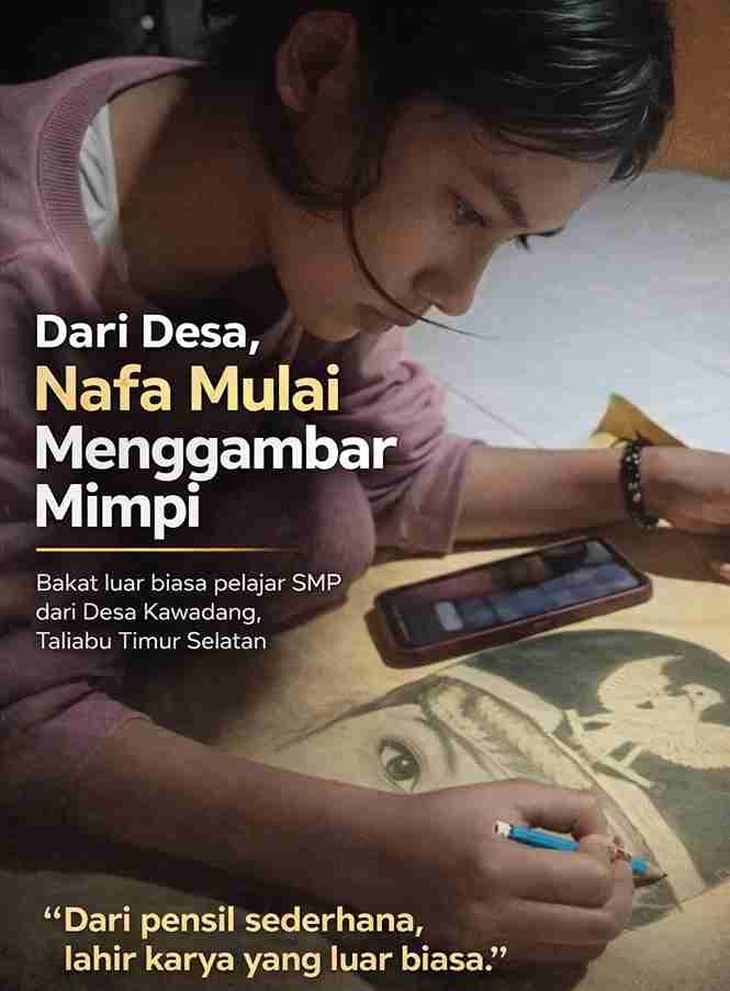 HotnetNews.co.id||TALIABU – Di sudut sunyi Taliabu Timur Selatan, tepatnya di Desa Kawadang, lahir sebuah cerita yang seharusnya menggugah nurani banyak pihak. Bukan tentang kekuasaan, bukan pula tentang proyek miliaran, tetapi tentang selembar kertas, sebatang pensil, dan tangan kecil penuh bakat milik seorang anak SMP bernama Nafa.12/04/26