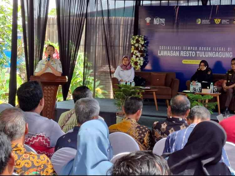Satuan Polisi Pamong Praja ( SAT POL PP ) Tulungagung melakukan sosialisasi di rumah makan lawasan yang bertempat di desa Bago Tulungagung, kegiatan ini dilaksanakan pada Rabu ( 16/10/2024 ) yang di hadiri oleh narasumber dari Bea cukai KPPBC Blitar, Kejaksaan Negeri Tulungagung dan DESPERINDAG Tulungagung dengan sasaran sosialisasi kepasa seluruh masyarakat tulungagung.